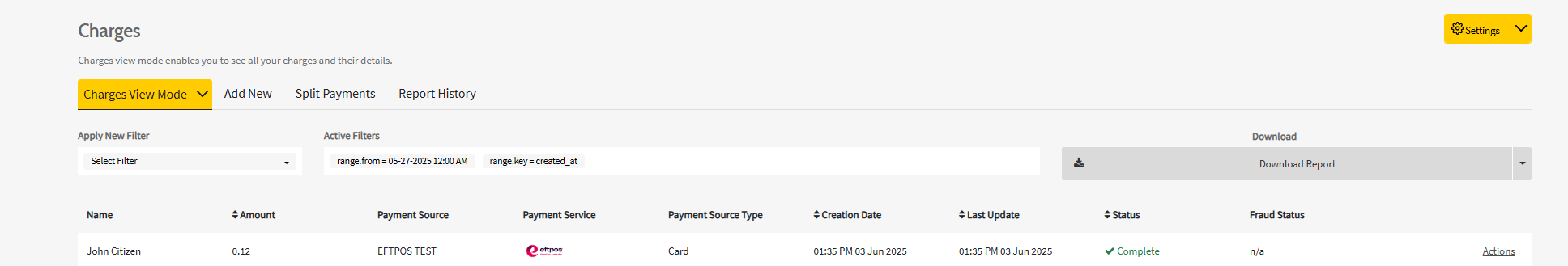In addition to the transaction response, you will also see the charge appear in the PowerBoard Merchant Dashboard.