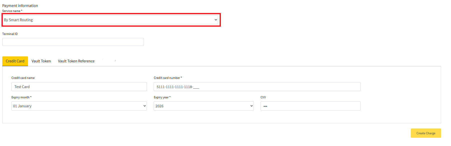 Once the above steps have been completed you can then process the charge using your routing rules. The main difference of using routing rules compared to doing a standard charge is not needing to supply the 'Gateway_ID' during the charge as the routing rules will determine which gateway the transaction is processed through